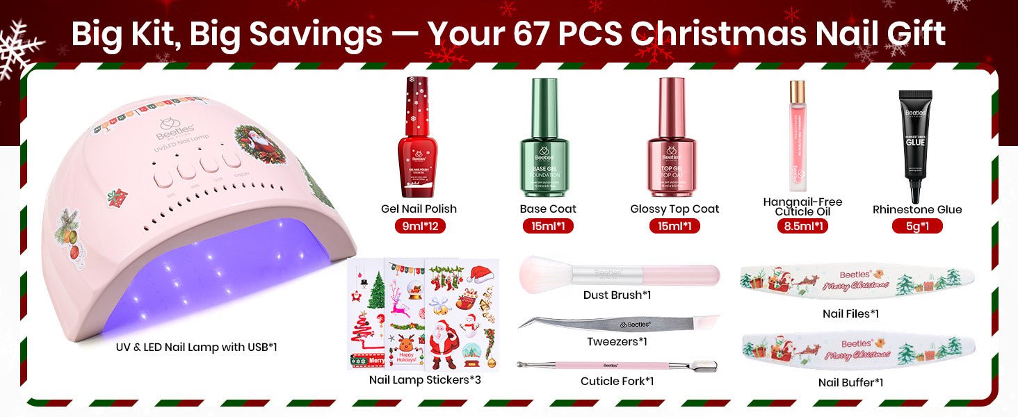 67個入り ジェルネイルキット クリスタル クリスマスギフト – 12色 キャットアイ レッド グリッター ジェルポリッシュキット