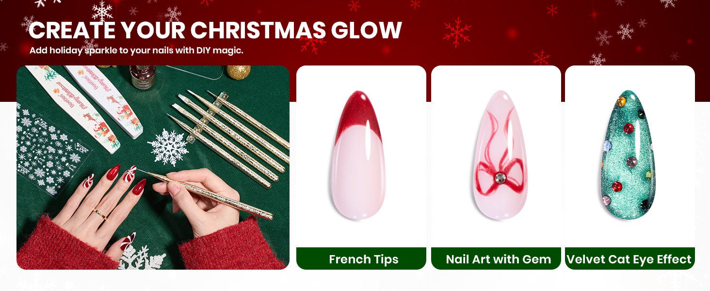 • 67 個のネイルマニキュアキット(すべて揃っています):このジェルネイルポリッシュセットには、12 色のジェルネイルポリッシュ(レッド、ピンク、グリーン、ブルーのキャットアイ ジェルネイルポリッシュ、シルバー、ゴールデン、レッドのグリッター ジェルネイルポリッシュなど)が含まれています。現在のネイルアート スタイルのトレンドとさまざまなネイル デザインのニーズを満たします。また、ベースコートx1、トップコートx1、ラインストーングルーx1、キューティクルネイルオイルx1、2種類の160個のサイズのネイルチップとネイルディスプレイスタンドが含まれており、練習して完全なネイルマニキュアを手に入れたり、無限のネイルルックをデザインしたりできます。
