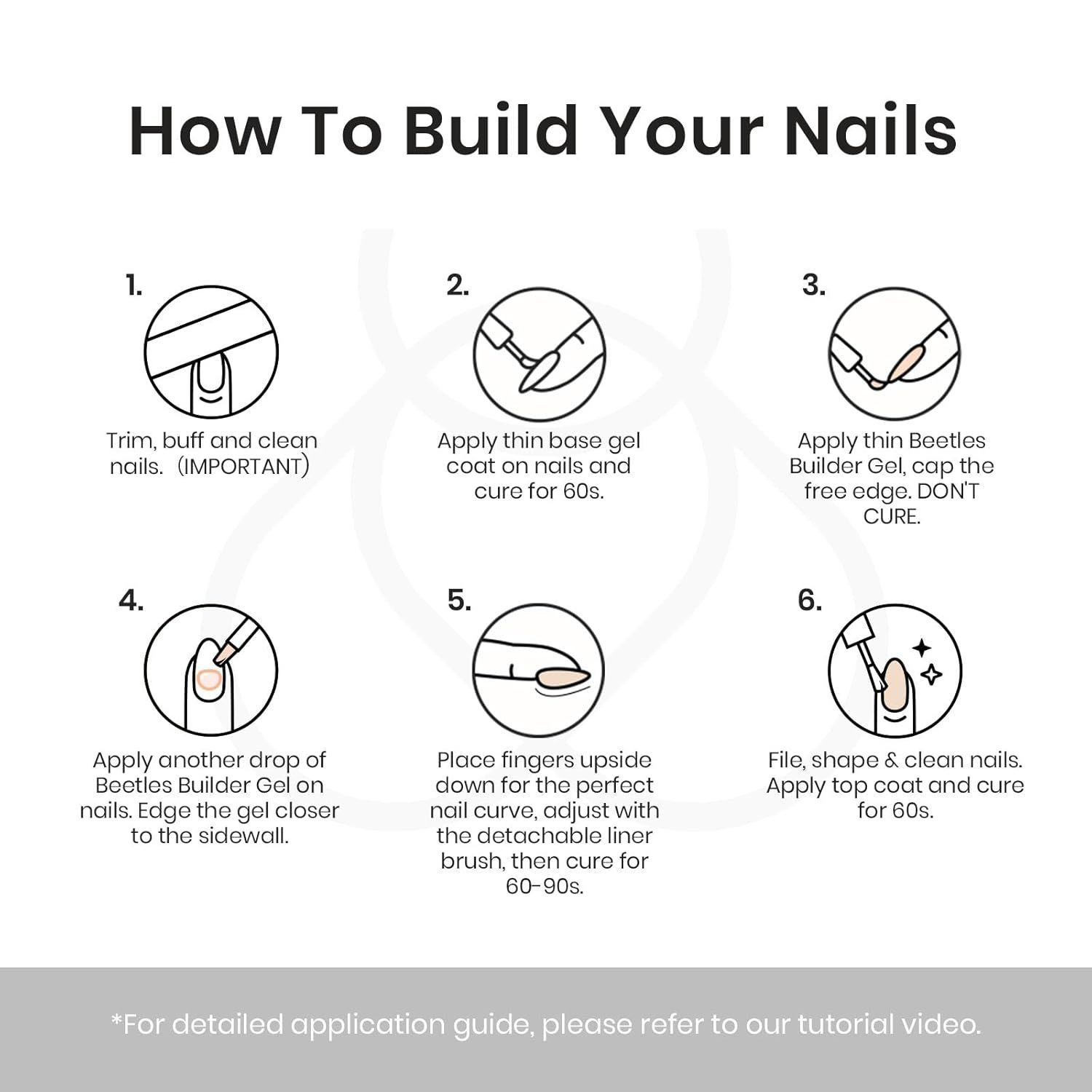 • 優れたセルフレベリング:ビートルジェルは爪の両面にスムーズに流れ、初心者にも使いやすく、技術的な要件も少なくなっています。逆さまにするだけでハイポイントの施工が簡単に完了し、サンディング時間を短縮し、自然に滑らかなカーブを描くことができます。透明ハードジェルは弾力性があり、爪の表面に強力な保護層を形成し、爪の破損やダメージを軽減し、長期的な保護がより耐久性があります。