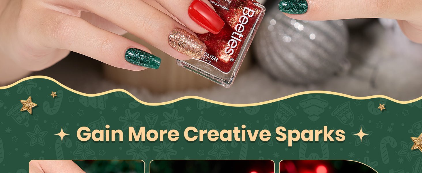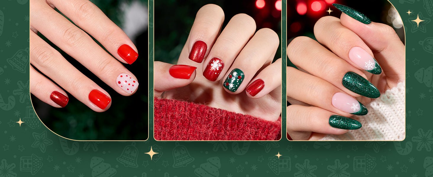 • 8日間長持ち:色あせや剥がれに強い6色のクリスマスネイルポリッシュで、8日間以上美しい爪を保ちます。クリスマスレッドの速乾ネイルポリッシュ、クリスマスグリーンのネイルポリッシュ、レッドのグリッターネイルポリッシュ、光沢のあるグリーンのネイルポリッシュ、ゴールドのクリスマスグリッターネイルポリッシュ、シルバーのクリスマスグリッターネイルポリッシュが含まれています。