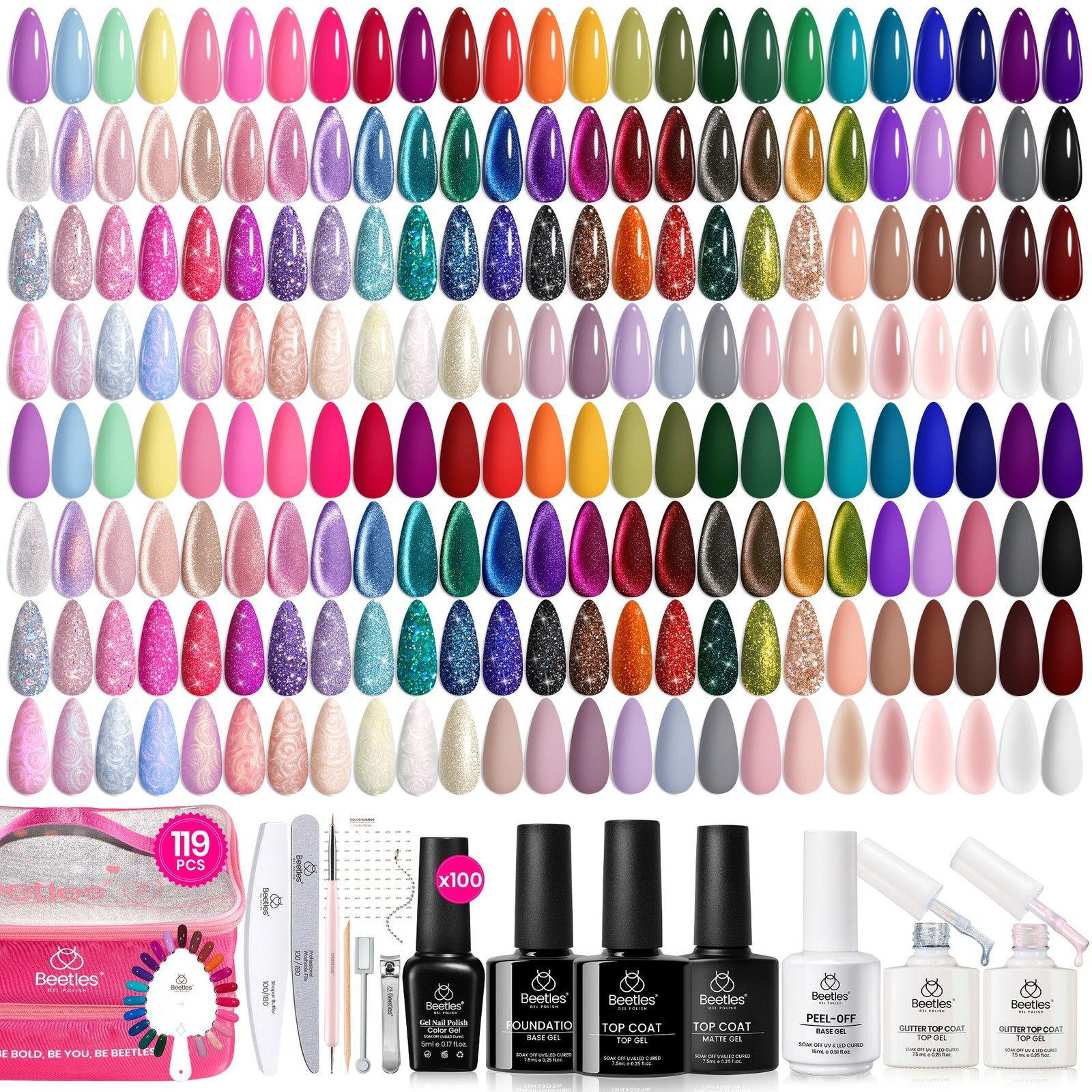 (さらに20ドルのギフト付き)ネイルヌーク 100色 バレンタインネイル | 119個入り 収納バッグ付き オールシーズン使えるジェルポリッシュセット