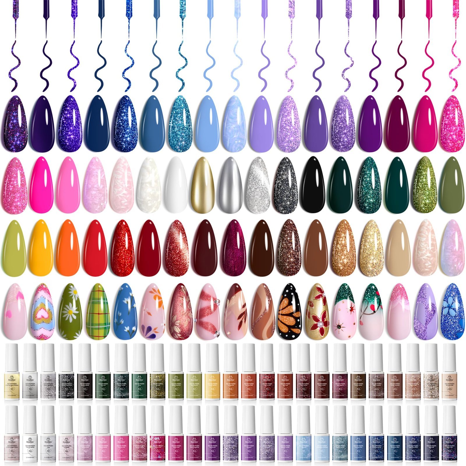 • ジェルライナーネイルアートポリッシュセット:カラージェルライナー5mL * 32、グリッタージェルライナー5mL * 11、スワールジェルライナー5mL * 5、キャットアイジェルライナー5mL * 2が含まれています。あらゆる機会に各爪に異なる色を適用し、異なるパターンをデザインすることで、独自のスタイルを表現します。